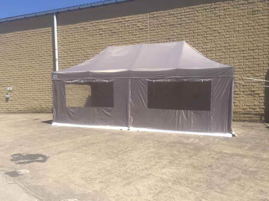 The price includes your choice of Marquee, canopy, 2 side wall with zipped doorway, 2 sidewall with window including blind and 2 blank side walls. Standard installation on a grass surface is included along with local delivery.