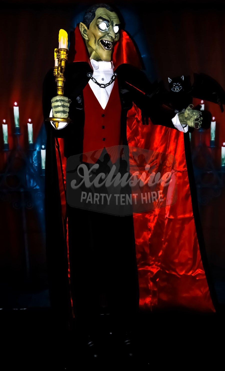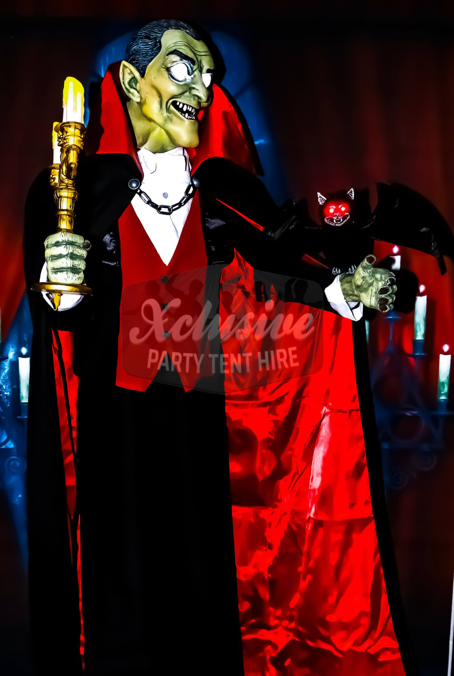 Standing at 6' tall the butler is quite imposing, he is motion activated with an animated mouth, light up eyes and moving mouth / head, the candelabra also flickers to create the right atmosphere.