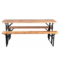 New to our hire fleet these table and bench sets are ideal for seating guests informally whether it's on the lawn , in a Marquee or alongside our Inflatable Pub.