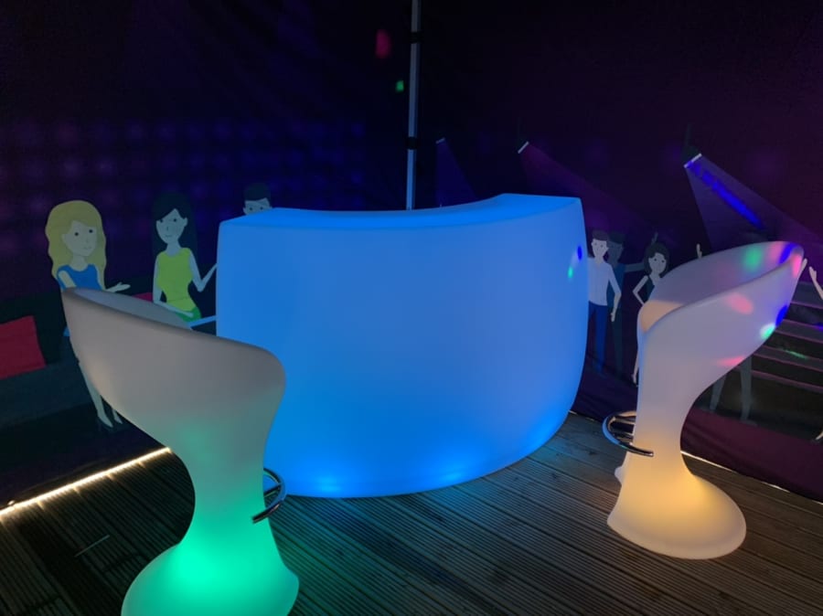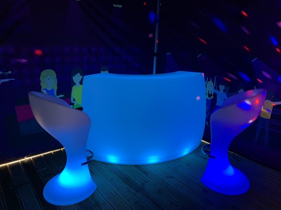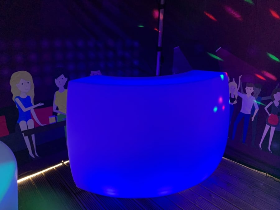 This LED Bar is a great way to bring some fun and colour to your party or event, the LED Bar is supplied in individual sections allowing you to customise the size and shape of the bar for your event.