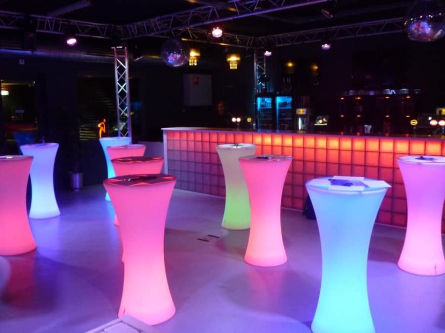 LED Poseur tables are perfect for any function or party bringing colour where ever they go, The LED Tables are perfect to place your drinks on whilst you dance, congregate round to socialise or why not hire a couple of LED Barstools for each table you hire.