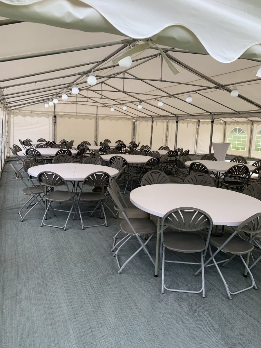 The marquee is ideal for any event and can be supplied with lights, tables and chairs at extra cost.