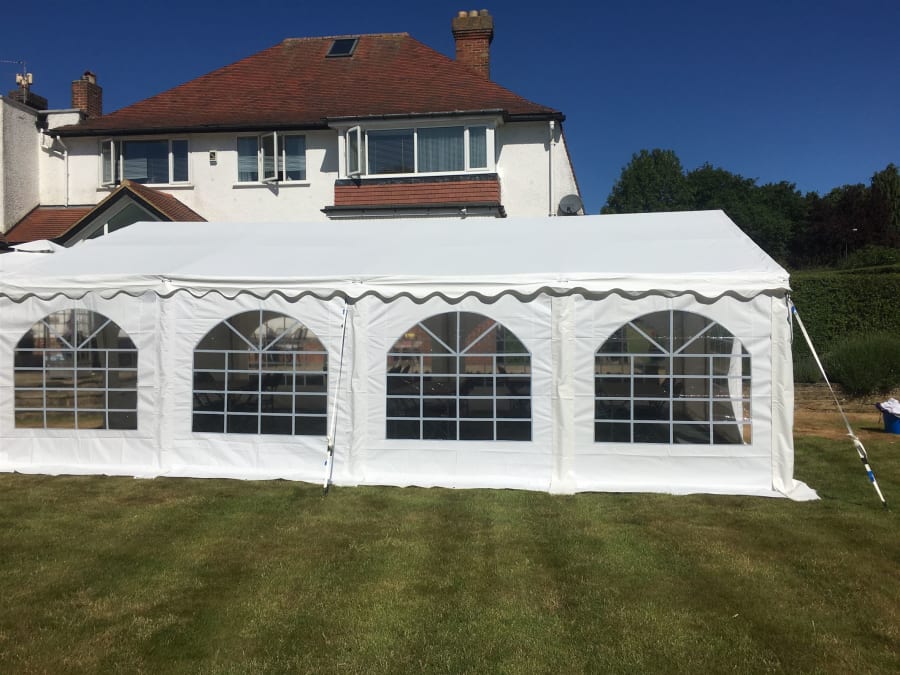 Our 6m X 8m Marquee is available for the larger party or event and is of a more traditional construction taking 2 to 3 hours to erect, doors, windows and blank panels can be arranged to suit your purpose.