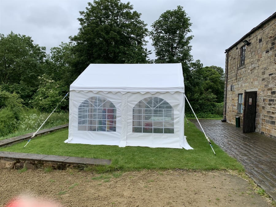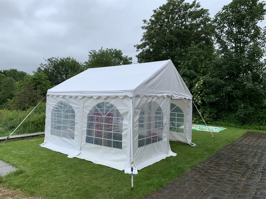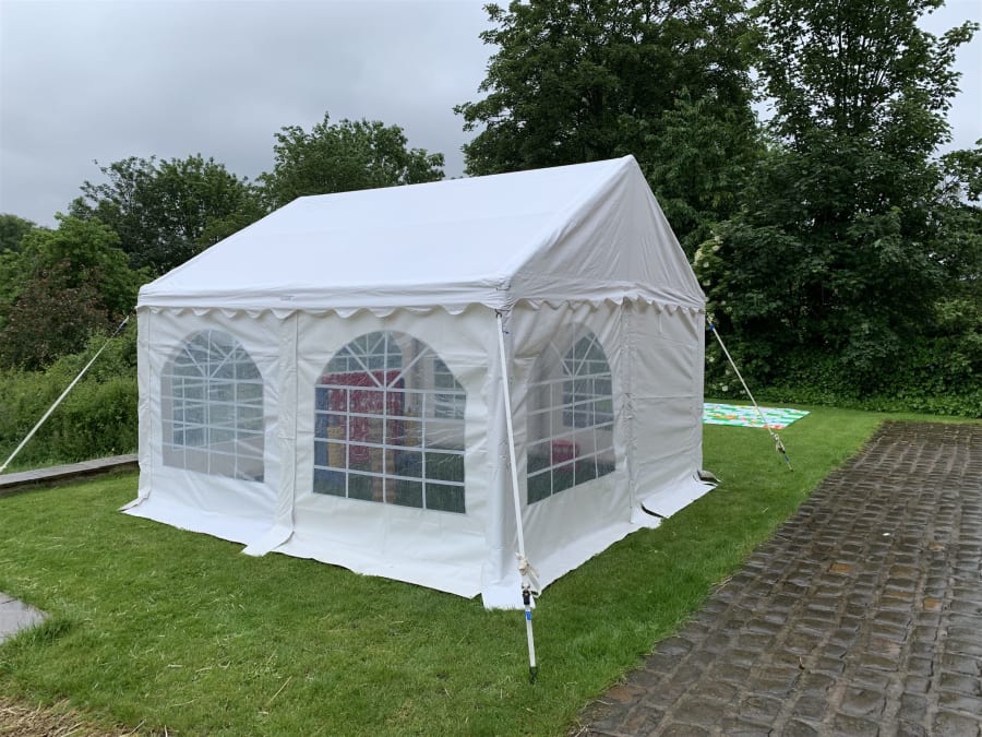 Our 4m X 4m Marquee is available for the larger party and is of a more traditional construction taking 1 to 2 hours to erect, doors, windows and blank panels can be arranged to suit your purpose.
