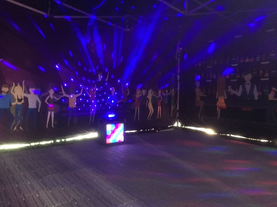 We then add a Bluetooth speaker system, disco lights and a smoke machine giving you a nightclub experience in your own garden, just add your own music.