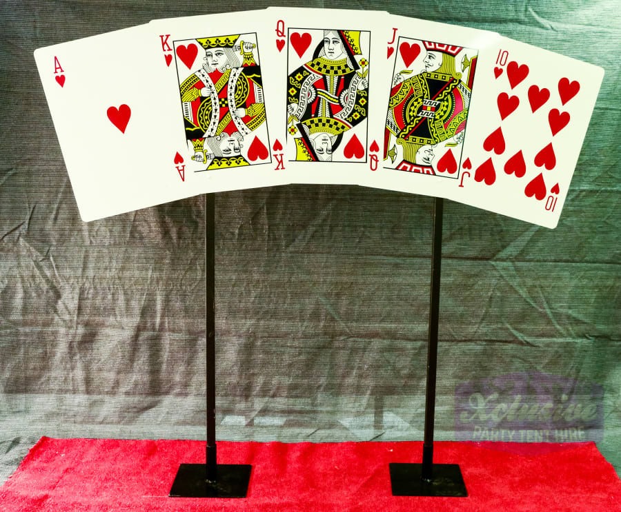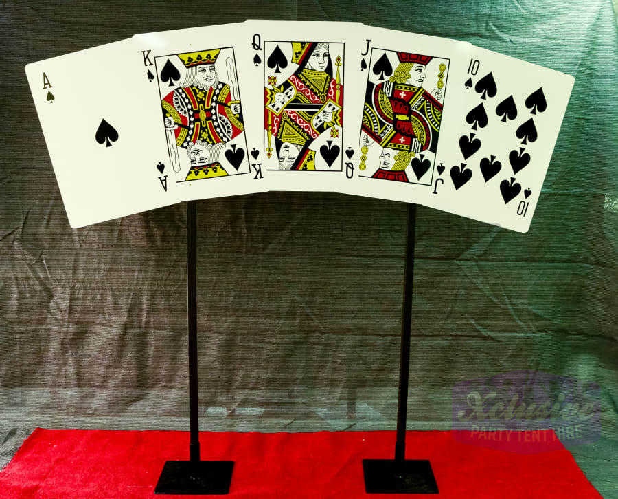 Our Playing card props are perfect for any Fun Casino, Vegas or James Bond 007 Themed night standing at approximately 1.9m high and 2.1m wide (2 available) they look great behind the fun casino tables or as a backdrop to theme a room