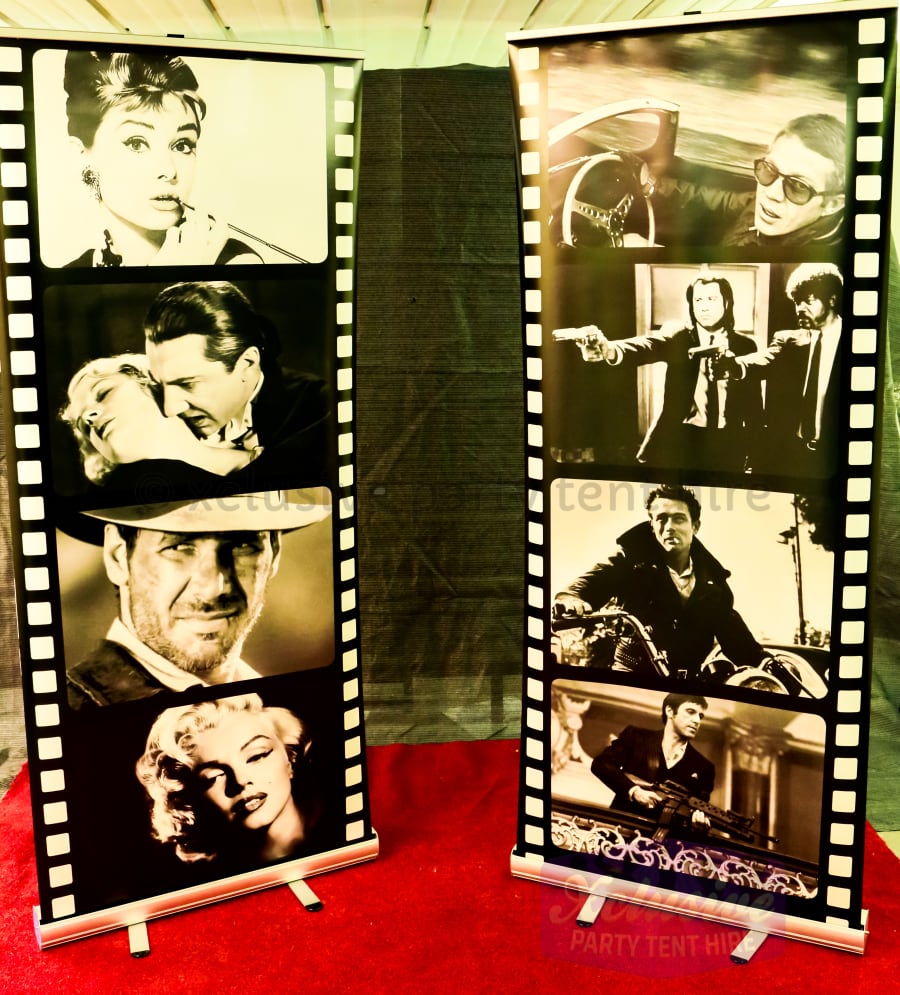 Our freestanding film reel banners feature images from some of the most popular films, measuring around 2m high they are a great talking point for guests